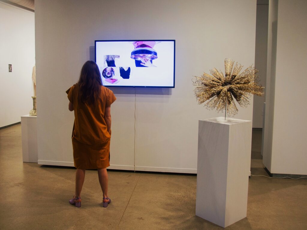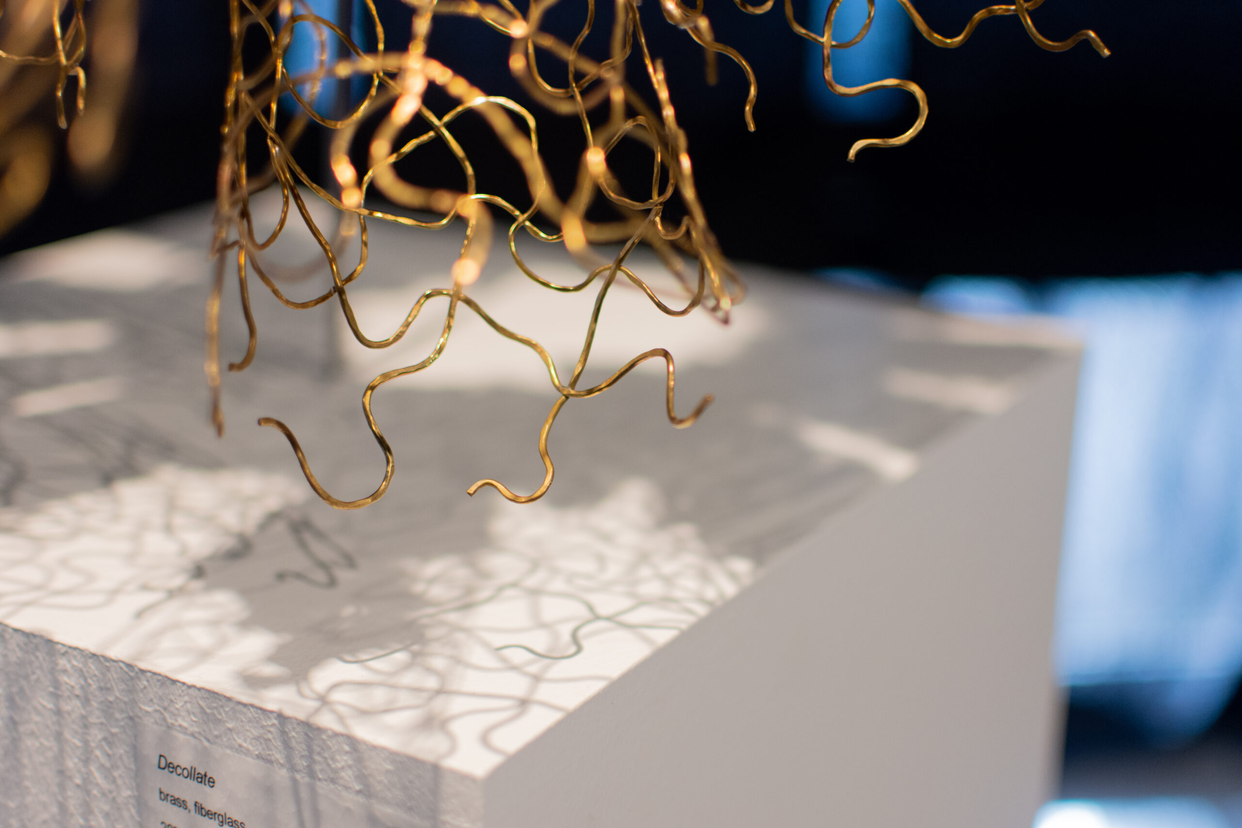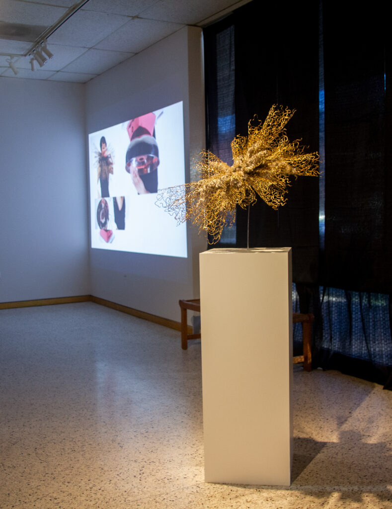 This single-channel video explicitly visualizes a mind-body separation while presenting a performance which implicitly shares with the viewers the inevitable mind-body connection with the perfect synchronization of motions traveling back and forth across all truncated screens. The golden brass neck collar inherits the historical influence of a ruff or a millstone collar from the mid-sixteenth century as a portent symbol of status and wealth. The pink cotton candy, on the other hand, delivers the raw desire and intrinsic motivation through a child’s gaze. The placement of the cotton candy machine, which is right below pelvis height covering the genital area of the performer, heightens this symbolic role. By performatively engaging a well-crafted restraint (the neck collar) and an instinctive temptation (the cotton candy), this performance expresses an overwhelming sense of irony, and presents a constant battle between the heart and the mind.