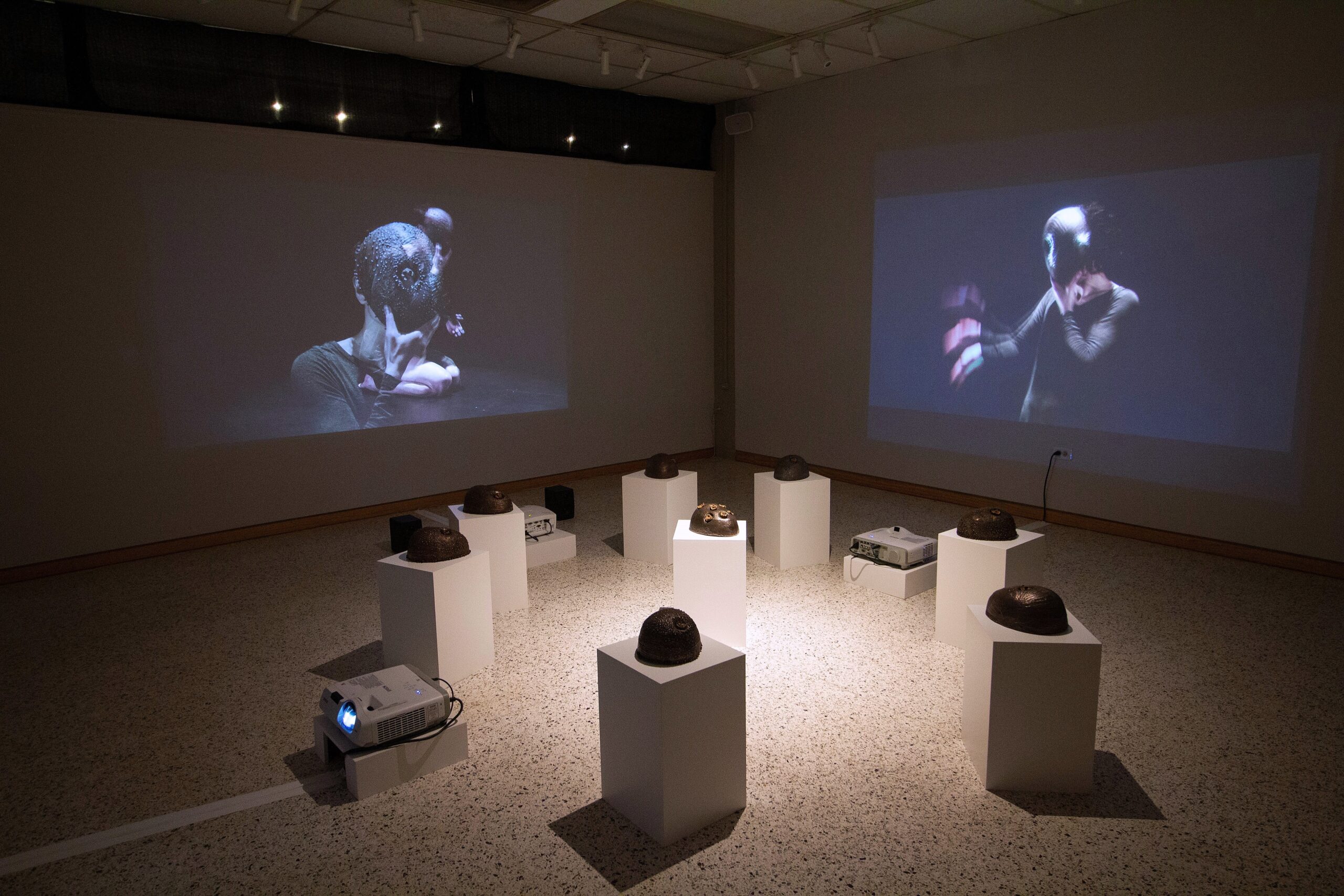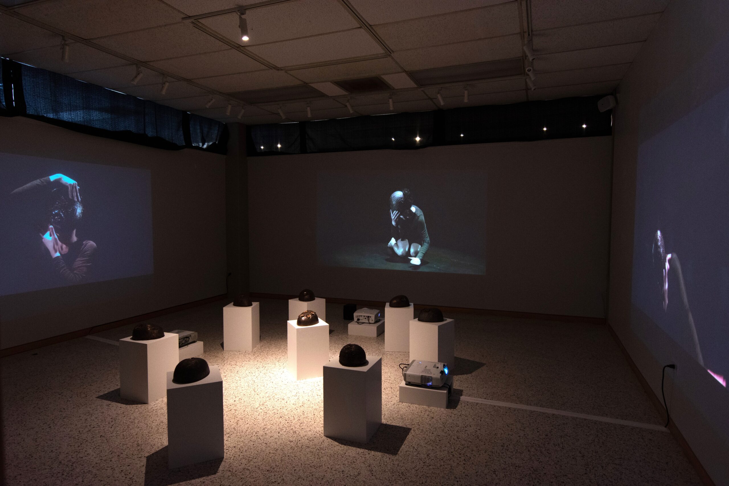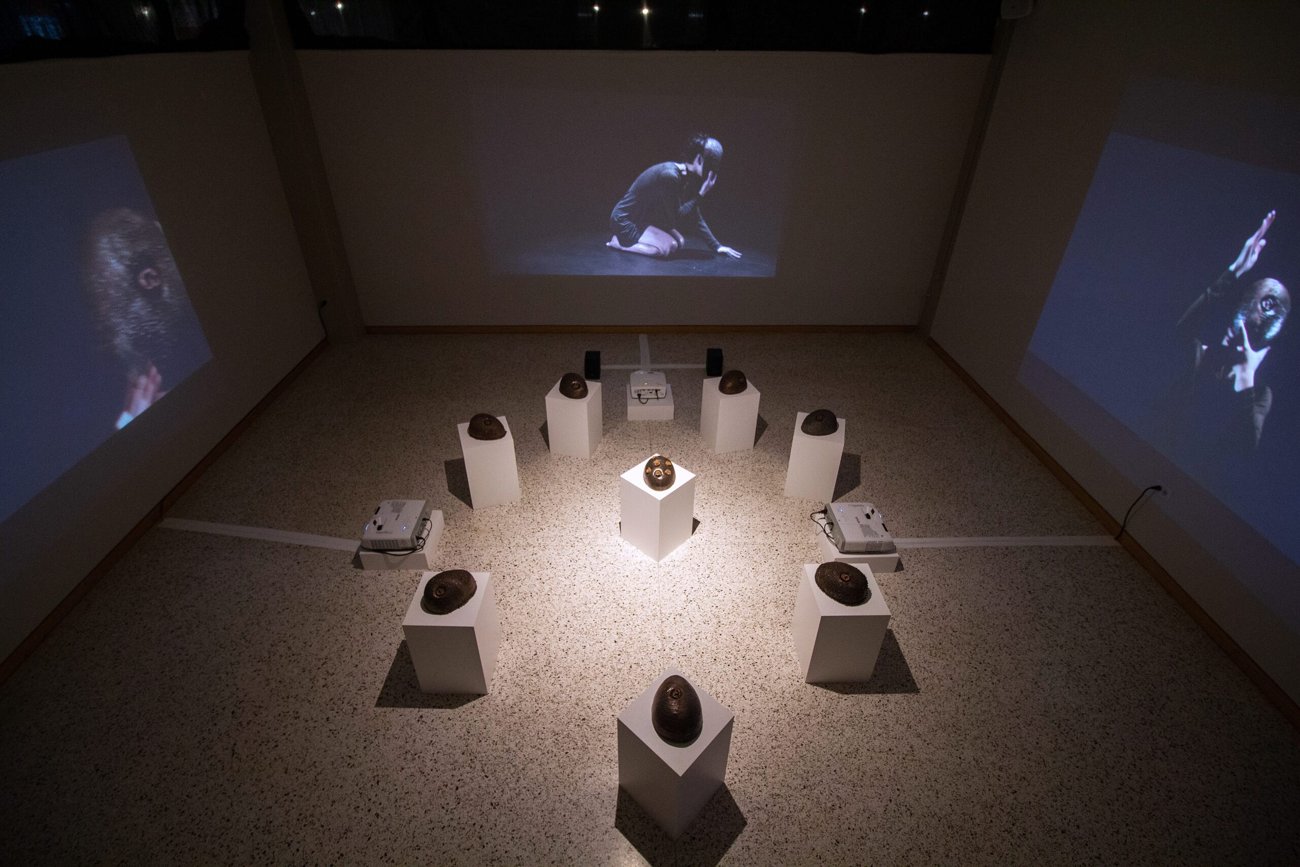 Based on the narrative of the performance-based video, in a black void, the performer encounters in total seven personas, all with identical body, wearing a mask with a single piercing, repeating a single motion while consciously holding the mask on their face. According to ancient Taoism, human identity is represented by the seven openings on a man’s face, allowing one to see, hear, smell, and eat. Here for each persona, each single opening serves as a partial human identity.